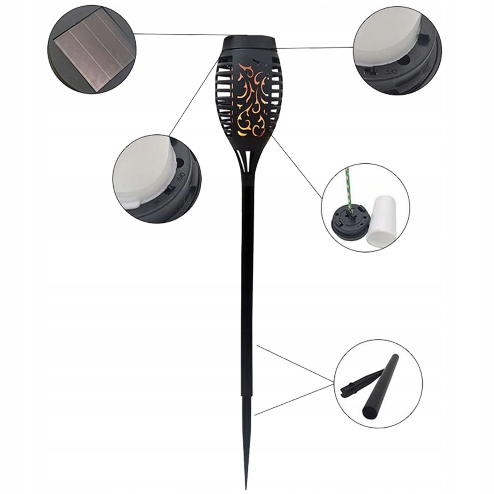 ⭐️ Набор из 6x садовых светодиодных ламп SKYKULEC FLAME с эффектом пламени на солнечных батареях, 40 см ⭐️