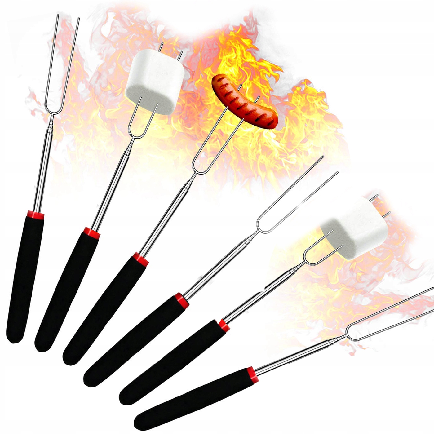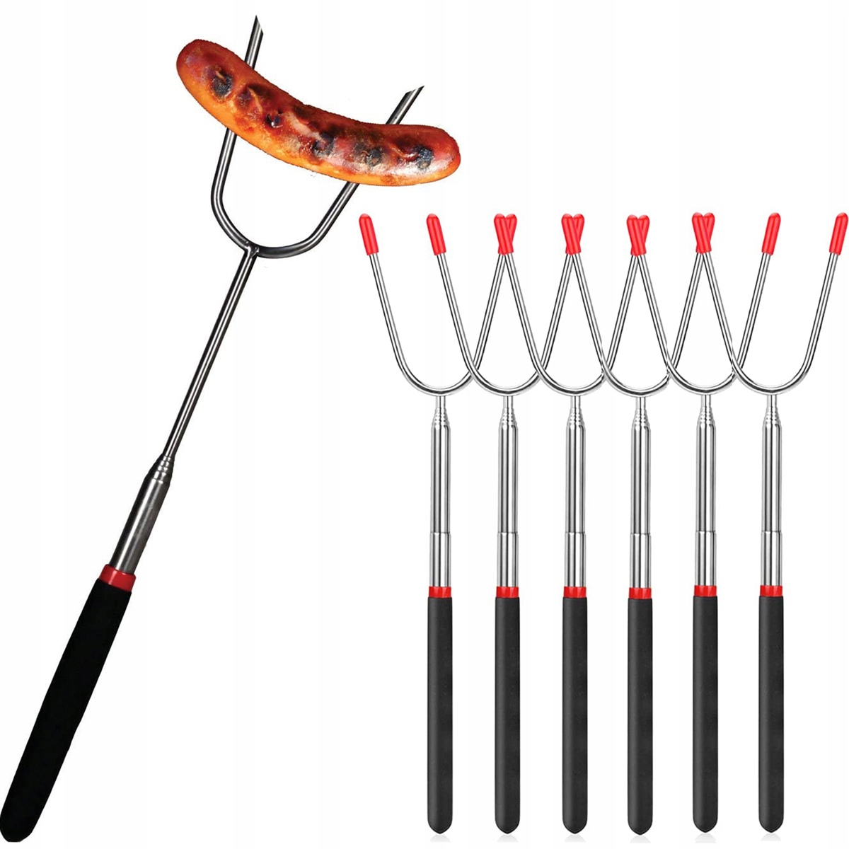 6 x ВИЛКА, ТЕЛЕСКОПИЧЕСКАЯ ПАЛКА - ПАЛКИ ДЛЯ ПОЖАРНОЙ ПАЛКИ ДЛЯ КОЛБАСКИ ДЛЯ ПОХОДА