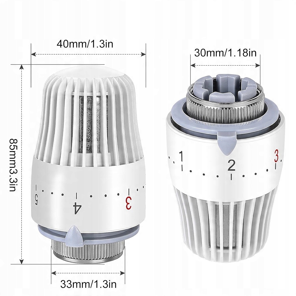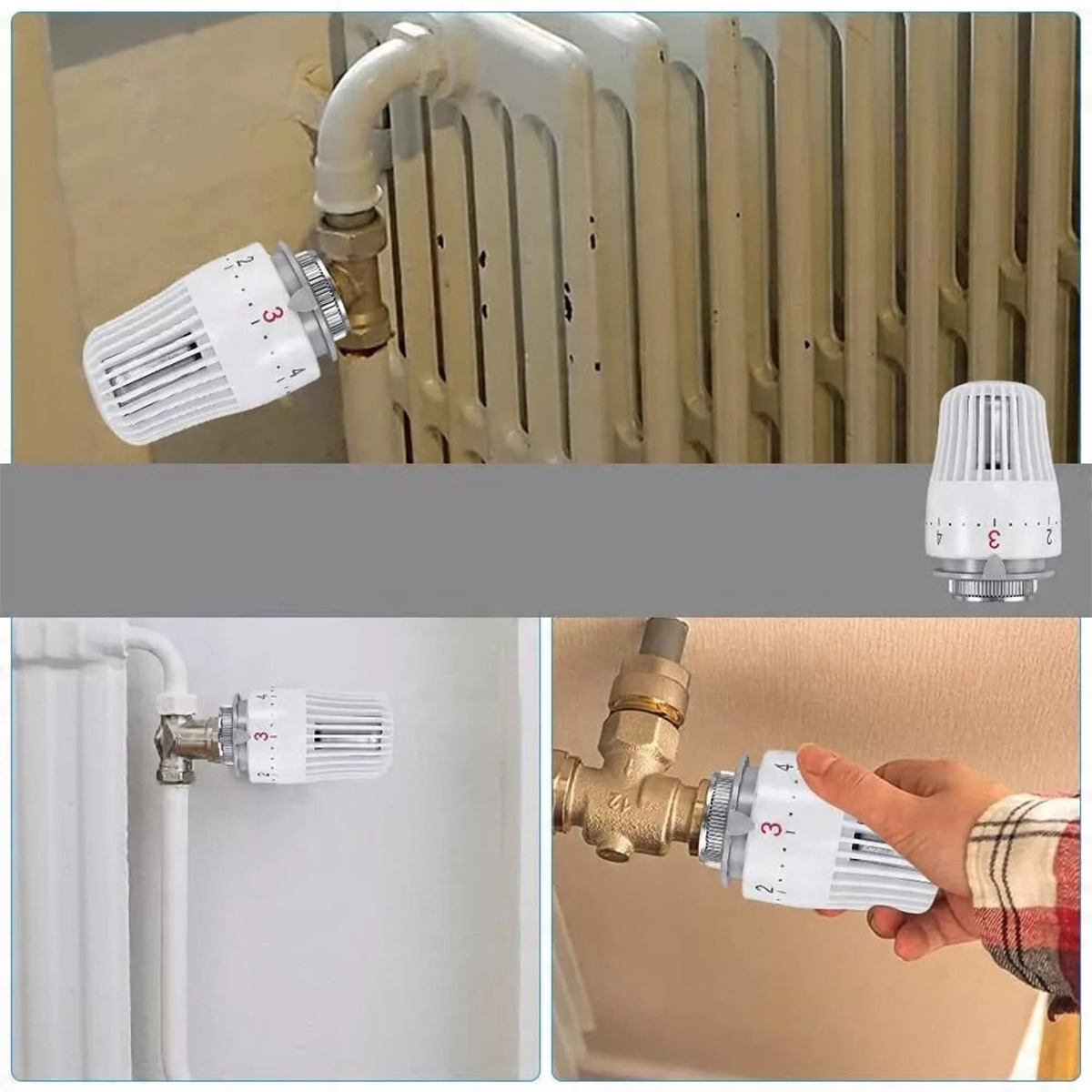 В комплект входят 6 радиаторных термостатов с резьбовыми соединениями M30 x 1,5 мм и подходят для резьбовых соединений M30 x 1,5 мм от производителей радиаторов. Перед покупкой проверьте, подходит ли эта термостатическая головка для вашего клапана. В комплекте только голова. Эти клапаны можно использовать в полотенцесушителях, колонных радиаторах, панельных радиаторах центрального отопления и вертикальных плоских радиаторах.