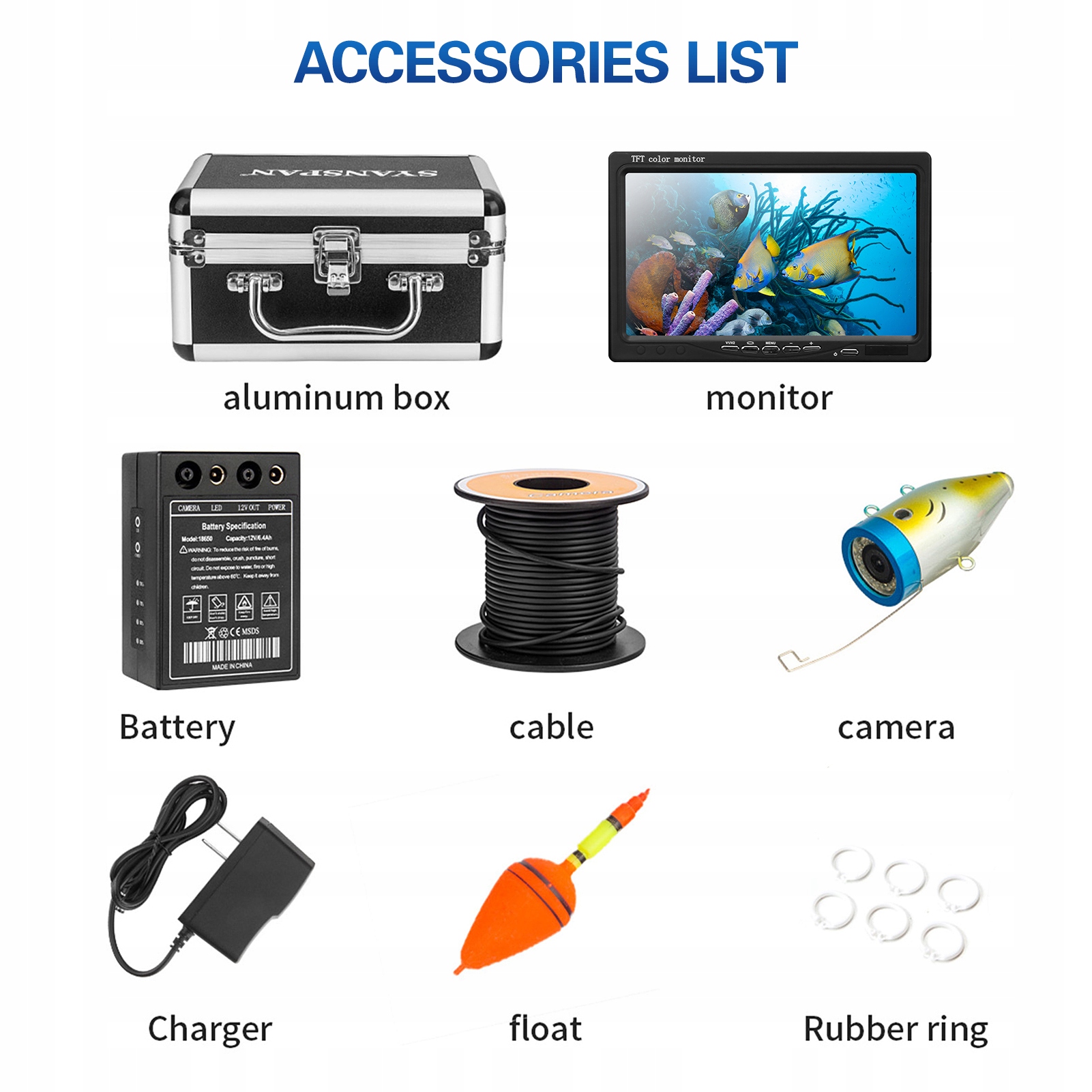 1. 7-дюймовый ЖК-монитор цвета помогает наблюдать за рыбой и подводными областями.