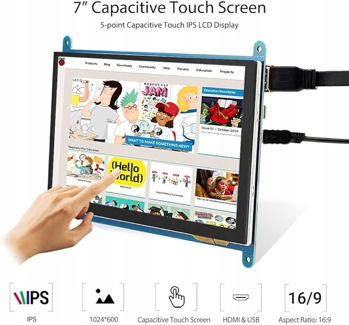 - 1. 【Широкая совместимость и емкостный 5-точечный сенсорный экран】 7-дюймовый электронный дисплей работает как с Raspberry Pi, так и с другими выводами HD. ЖК-экран, совместимый с Raspberry Pi 4, Raspberry Pi 3 и Pi Zero поддерживает 5-точечный сенсор, совместимый с Windows 8/8/10, поддерживает функцию одного порта.