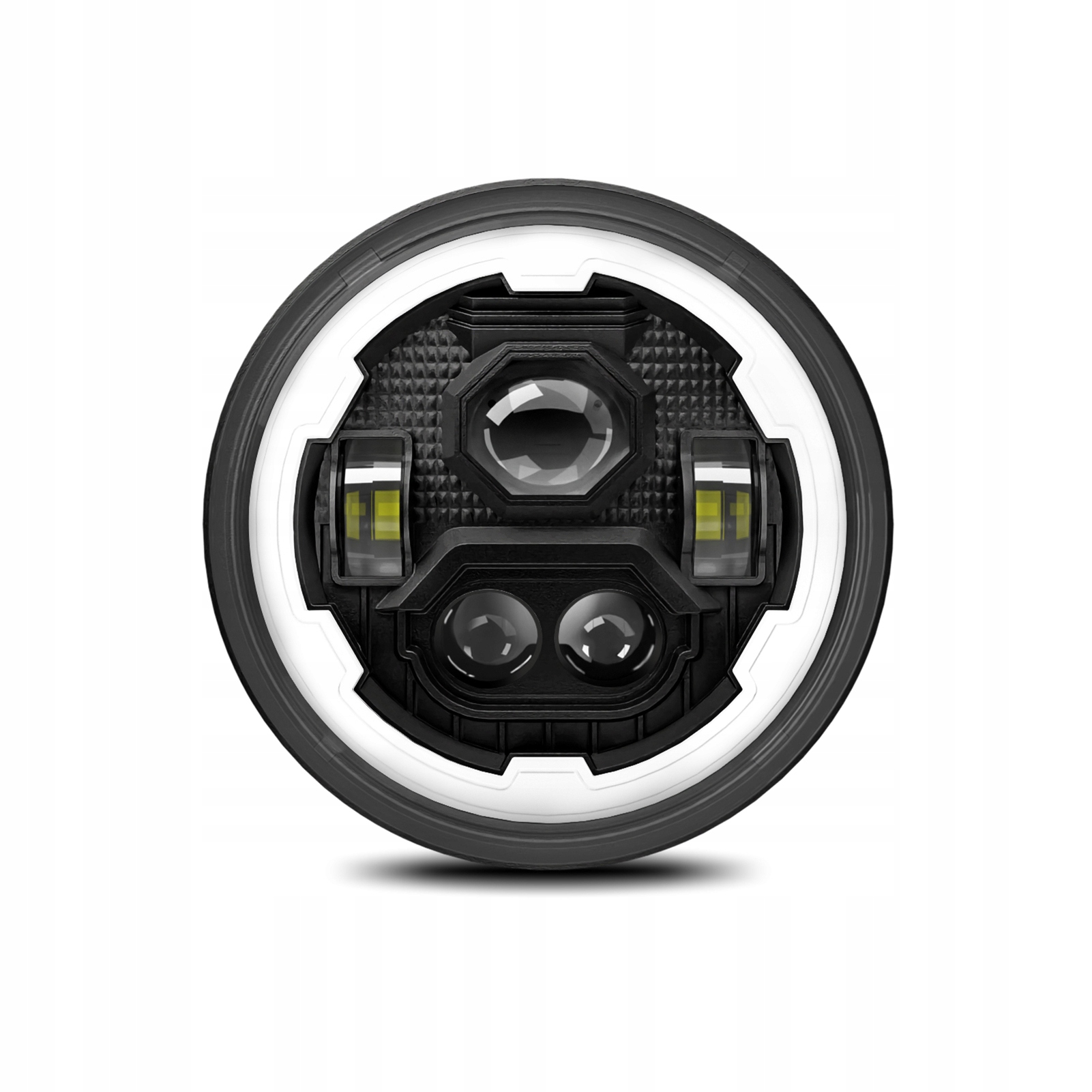 - Эта 7-дюймовая круглая светодиодная фара имеет четыре режима освещения: дальний свет, ближний свет, указатель поворота (желтый) и ДХО. Оснащенный линзами проектора премиум-класса, он обеспечивает превосходное освещение. Фара разработана с защитой от смешивания, водонепроницаемостью, пыленепроницаемостью и защитой от снега, что обеспечивает оптимальную работу в суровых условиях. Фара имеет нестандартную конструкцию с большой апертурой и внутреннюю крышку в механистическом стиле, что придает ей уникальный и технологичный внешний вид.