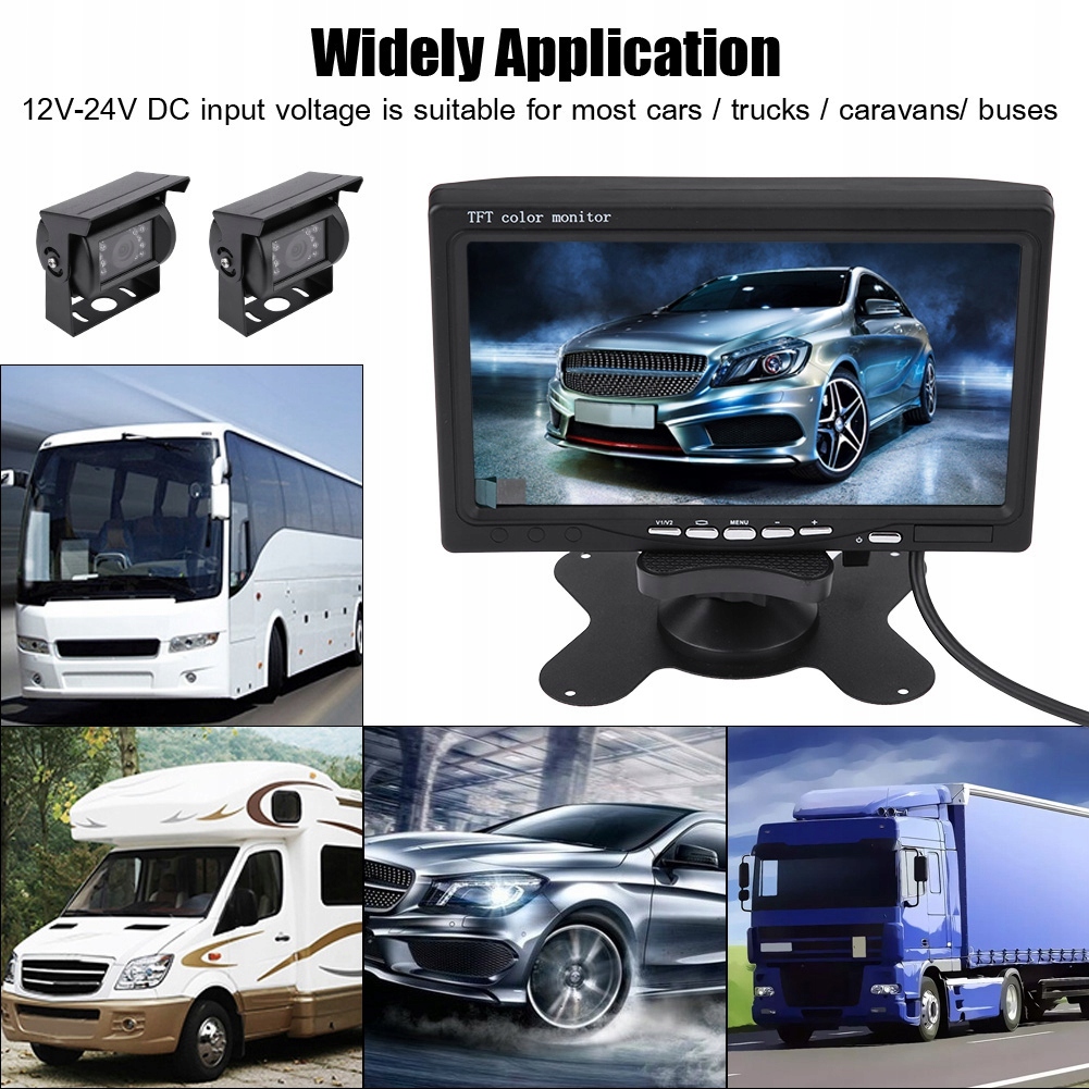 - 7 -Inch LCD TFT Monitor с дистанционным управлением, поддержка 2 -канальных видео входов, V1/V2 Selectable.