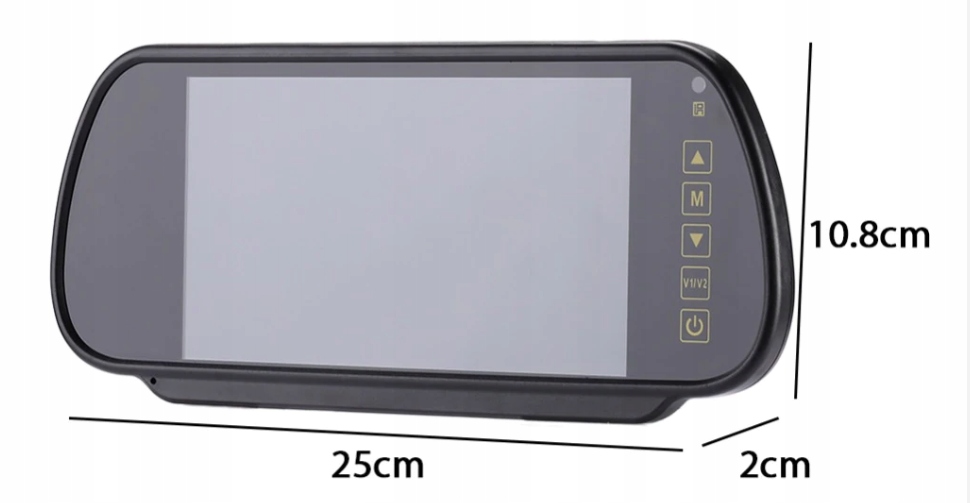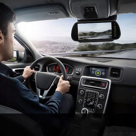 Встроенный в зеркало монитор имеет сенсорную панель и два видеовыхода. Оборудование крепится на оригинальное зеркало заднего вида в автомобиле. Сзади имеется специальный саморегулирующийся держатель, благодаря которому его можно адаптировать к большинству зеркал, держатель затягивается автоматически, винты отсутствуют. Монитор с высоким разрешением будет работать там, где нам нужно хорошее качество изображения и эргономичная установка.