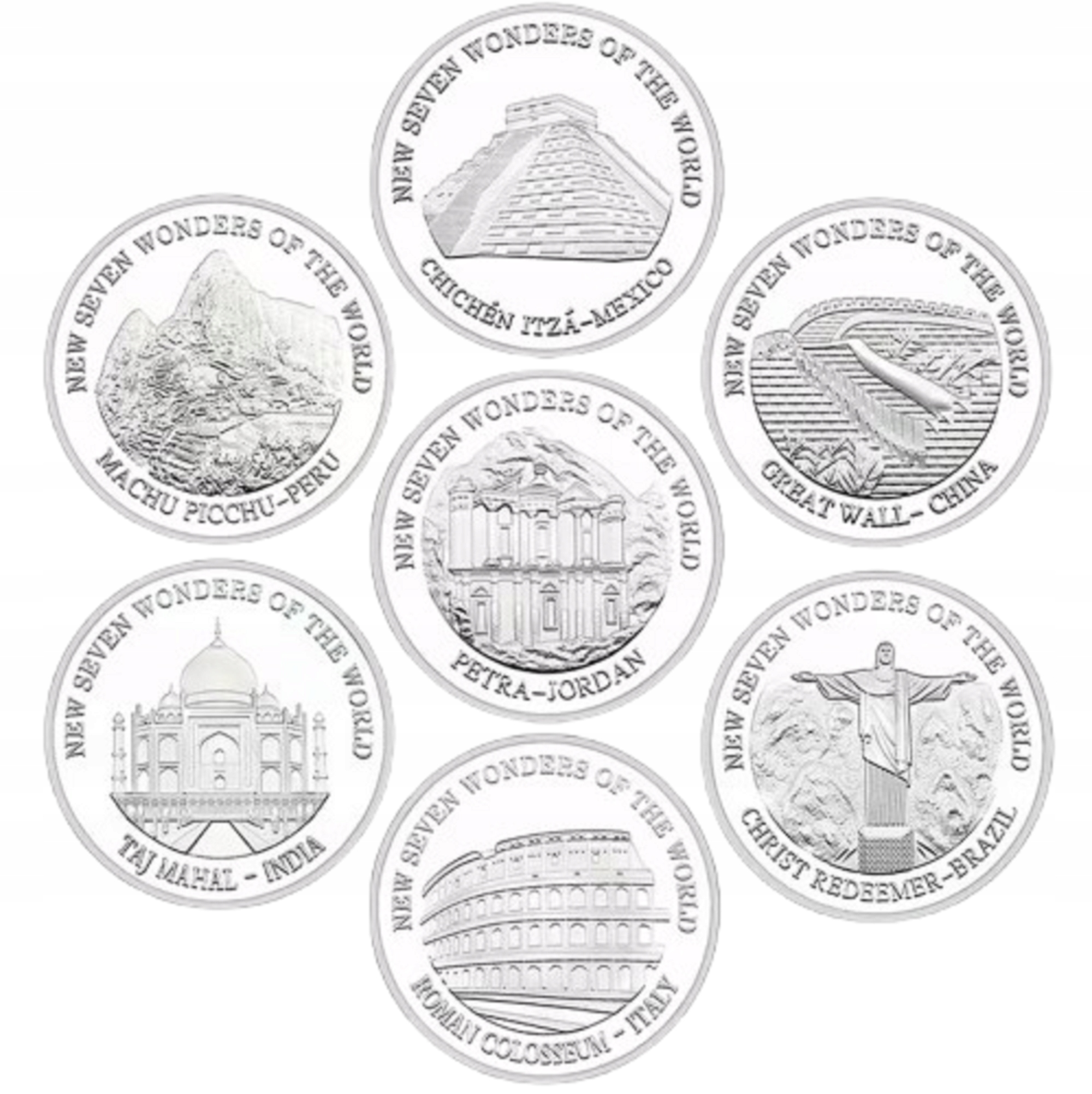7 МОНЕТ НАБІР СІМ ЧУДЕС СВІТУ СТАРОДАВНІ ЧУДЕСА ПОДАРУНОК ДІКАМ СРІБНІ
