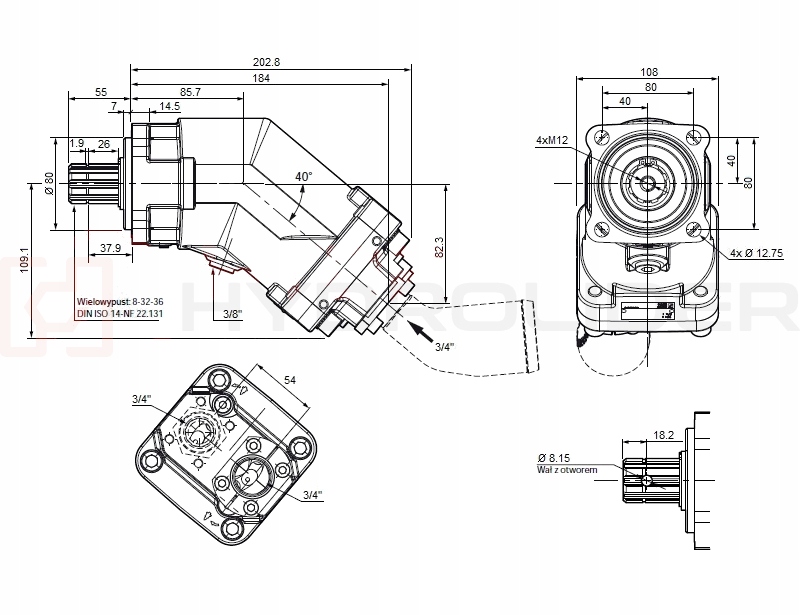 7-поршневая структура, наклон оси поршней относительно оси вала 40 °. Компактная и компактная конструкция, передняя подшипника также представляет собой центрирование насоса. Прикрепление прикрепления ISO закреплена 4 винтами, расстояние 80x80 мм; Centr Castle. 80-миллиметровый, мультипроводной вал 8-32-36, задние масляные порты, сосание 45 °. 130ccm