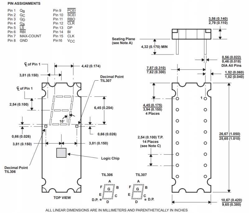 7-сегментный дисплей, TIL306, Texas Instruments
