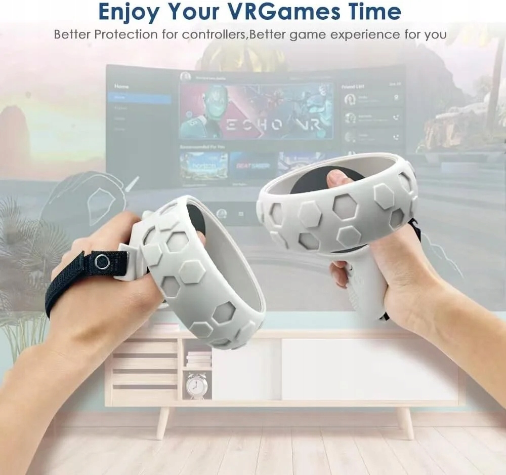 Чехол: благодаря точному дизайну отверстий для камеры этот силиконовый чехол не влияет на отслеживание датчика; с отверстием для зарядки, нет необходимости снимать силиконовую крышку при зарядке; и удобно рассеивать тепло, что обеспечивает работу консоли VR во время игры.