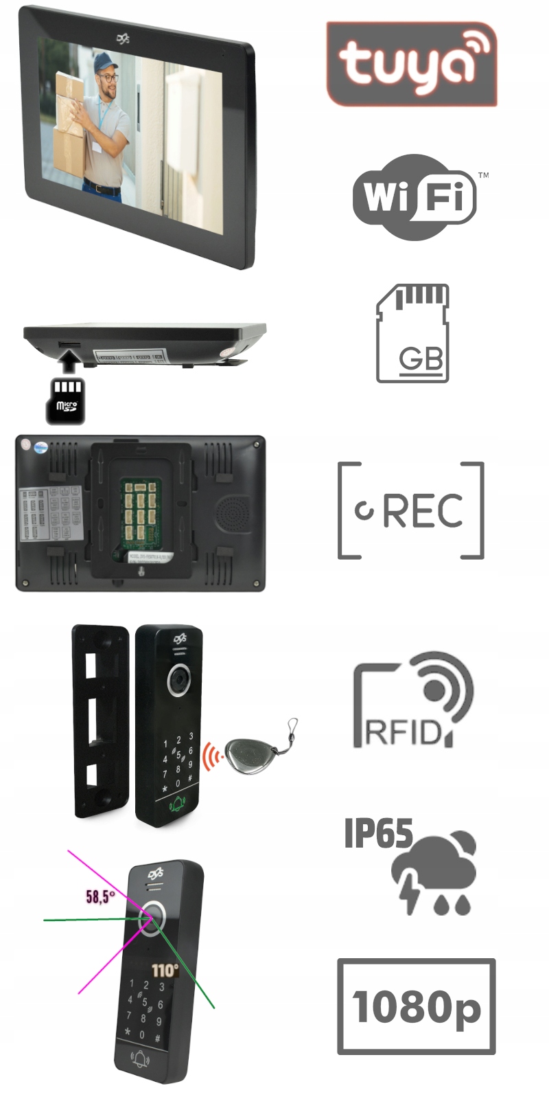 Благодаря встроенному модулю WiFi можно настроить видеодомофон с помощью польскоязычного приложения TuyaSmart, доступного для iOS и Android. Также можно подключить монитор кабелем к домашнему маршрутизатору.