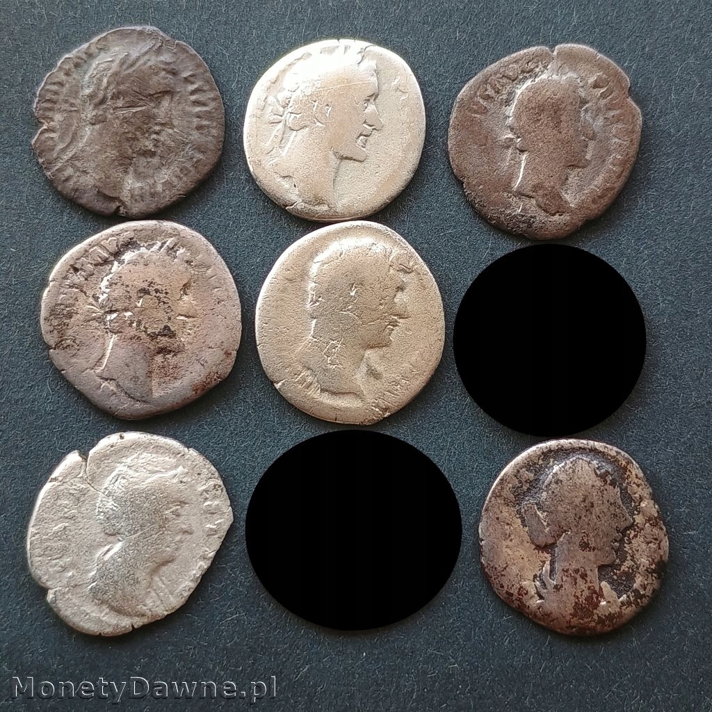 Установите 7 X Серебряный Денарий Римской империи; Первоначальный Денэри Римской империи со 2 века нашей эпохи. Среди правителей, среди прочего, Адриана, Антонина Пия, Фаустины и старшего или Фаустины II моложе; Общие, изношенные копии. Монеты для независимой идентификации. Цена на все монеты, видимые на фотографиях. Возможность разделения набора.