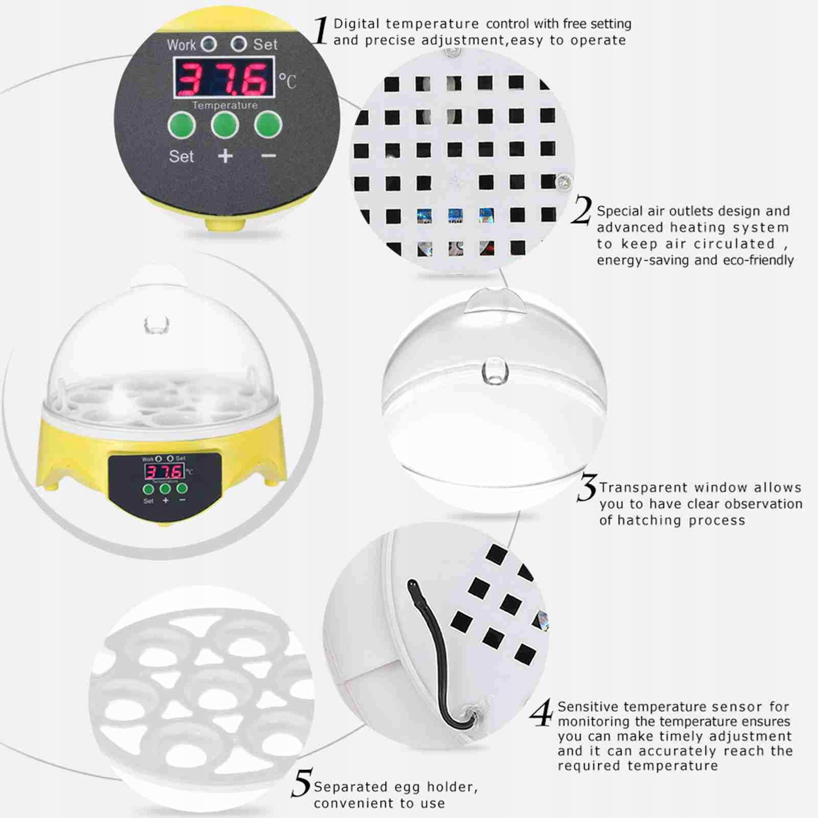 7 яиц мини -цифровой яичный инкубатор заполнение прозрачных яиц SG