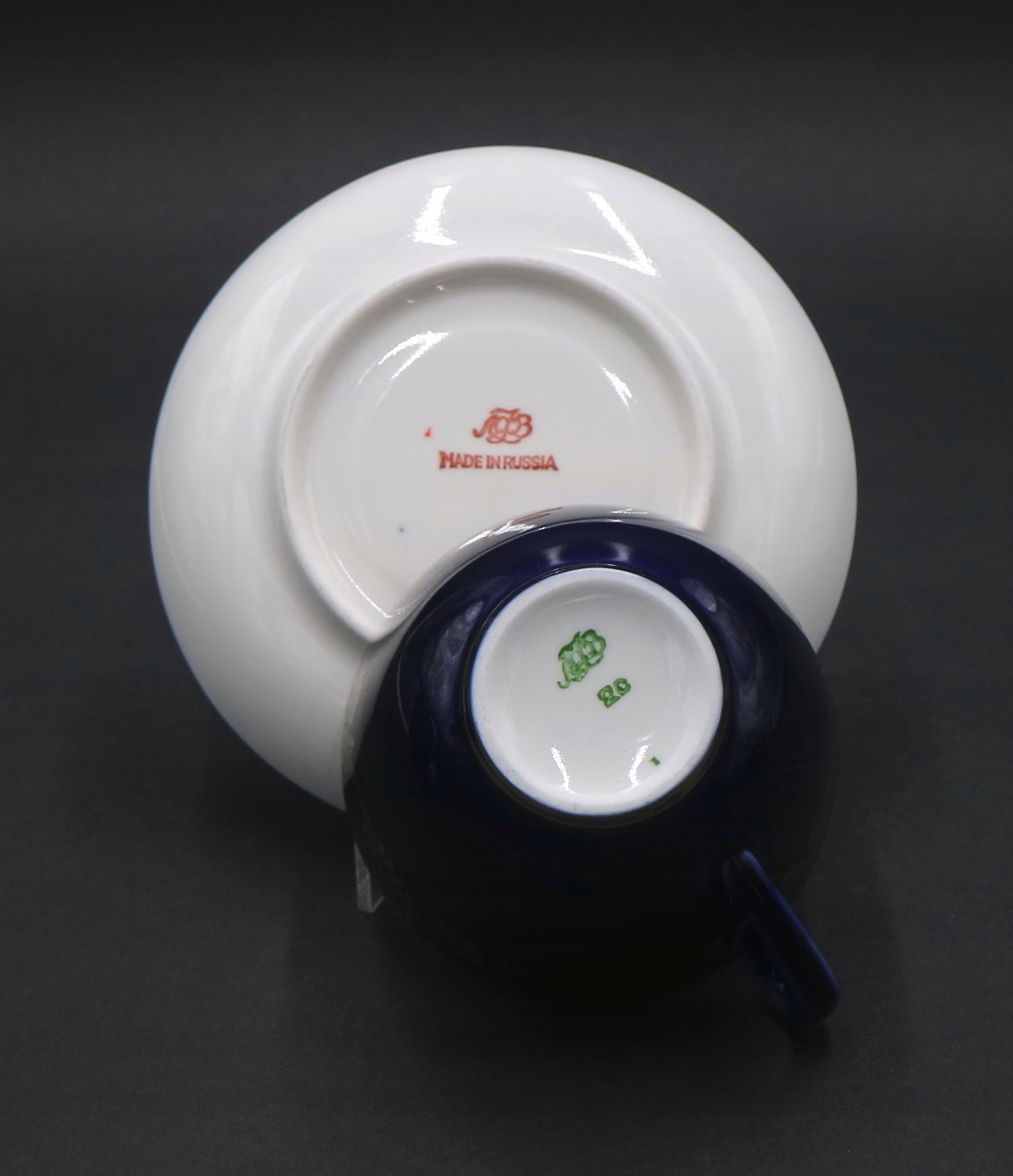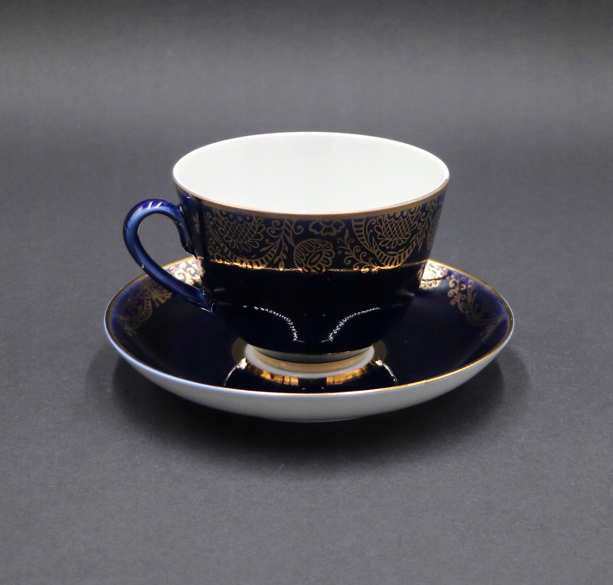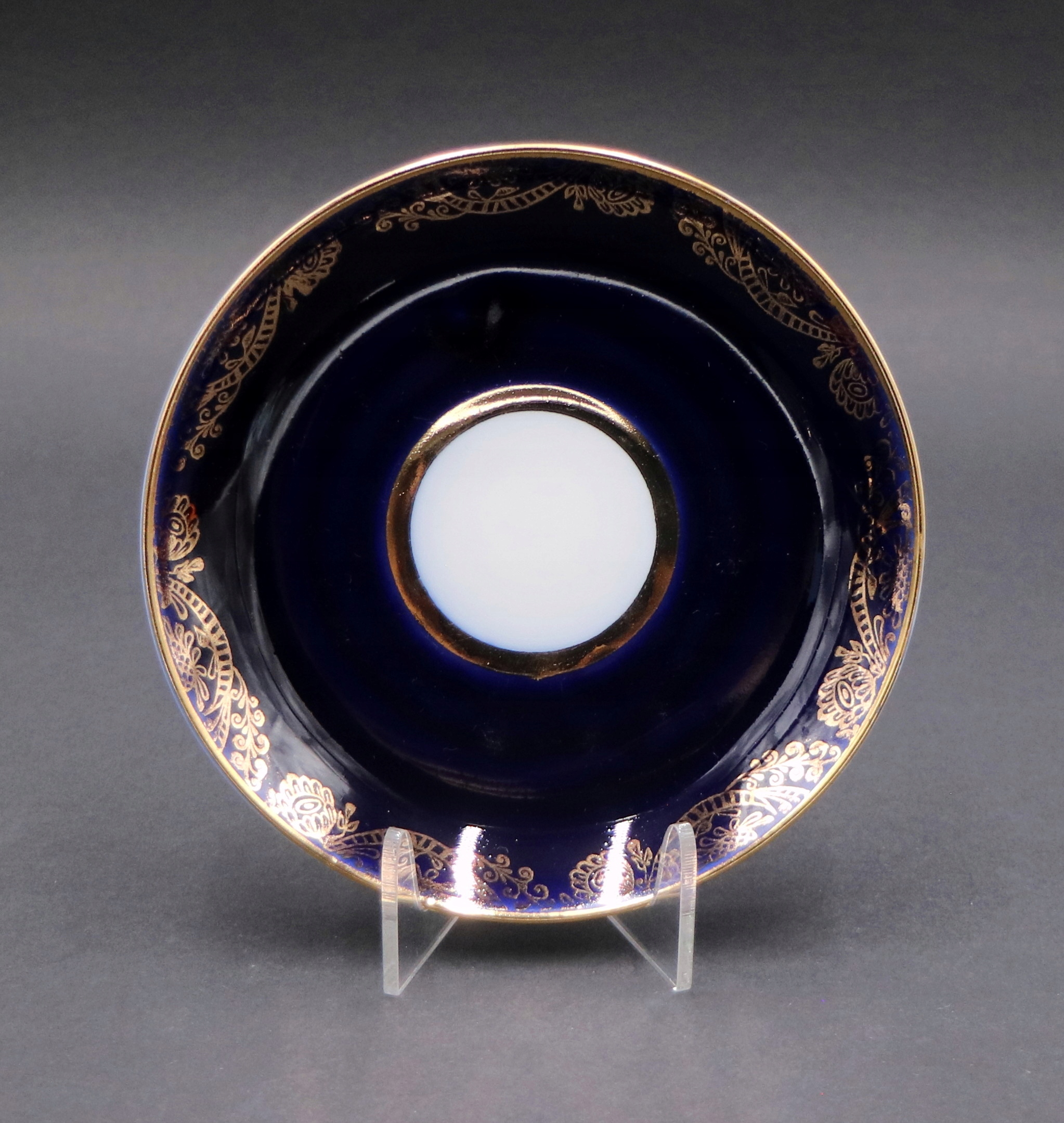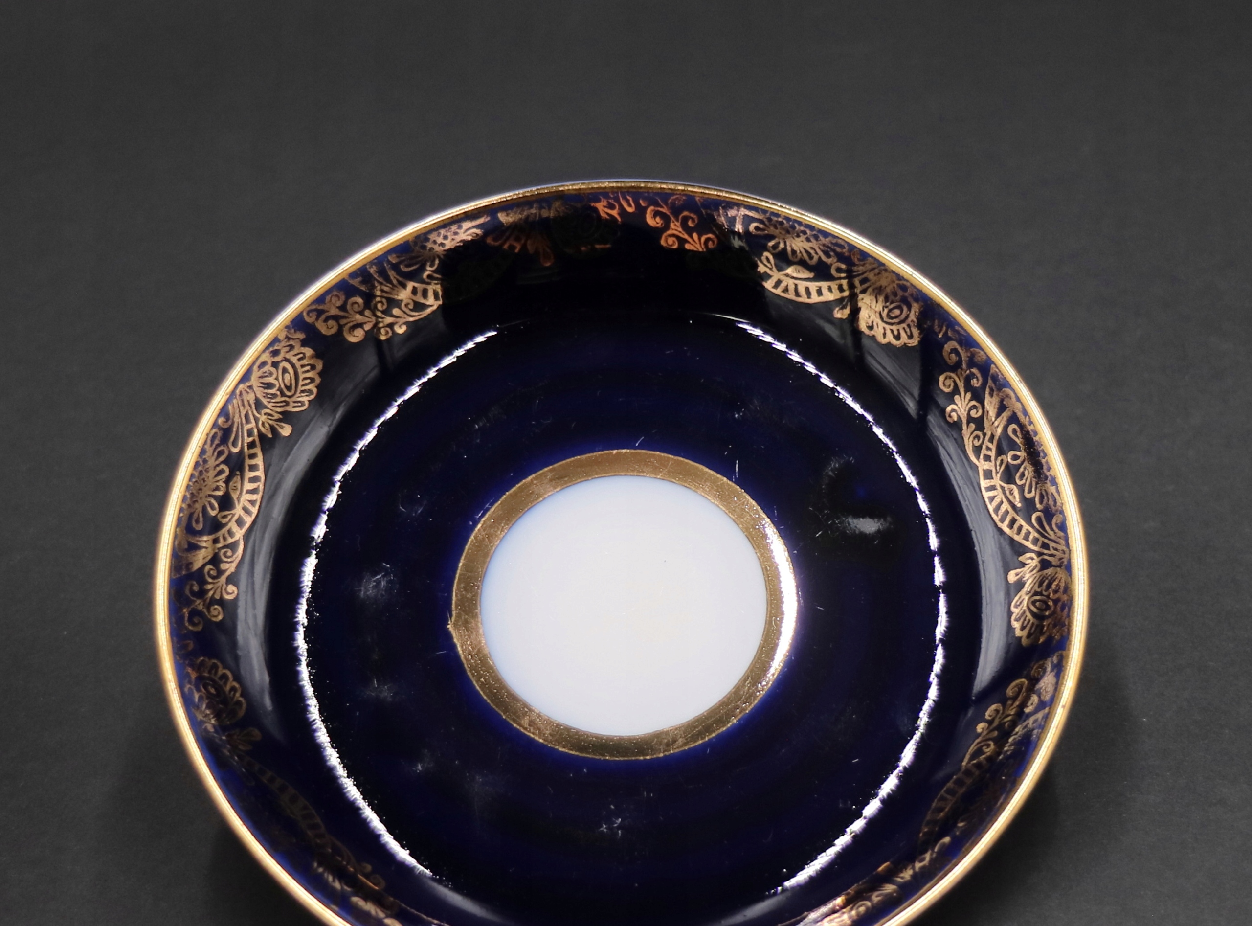 .Белый фарфор, украшенный кобальтом и позолочкой.