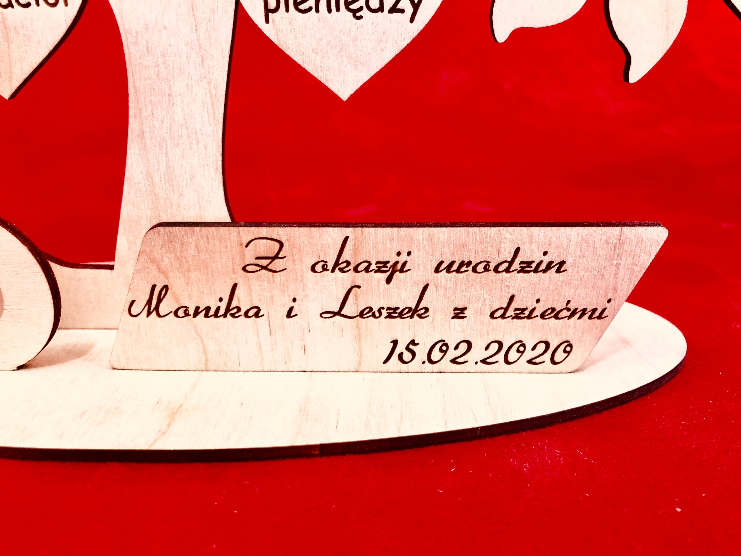 Подарок на день рождения в виде гравированного дерева с пожеланиями от нашей студии оригинальной гравировки GRAWERNIADDZ.