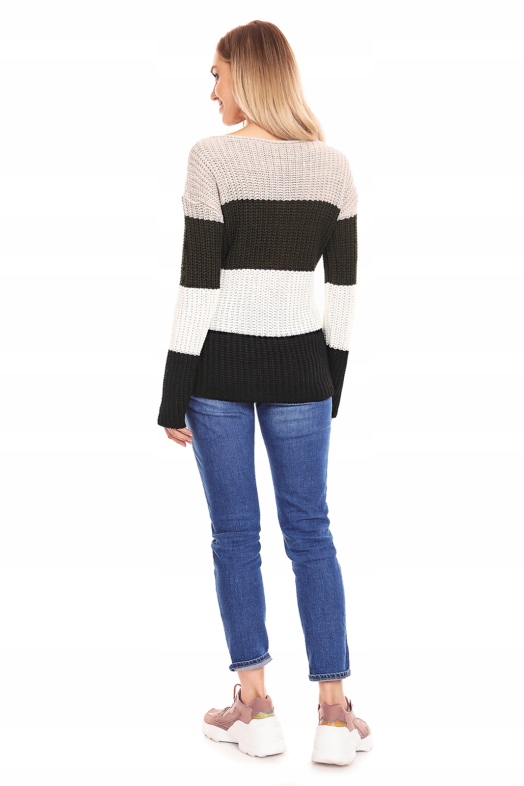 70019 СВИТЕР В ШИРОКИЕ ПОЛОСКИ АЖУРНЫЙ МОТИВ ЦВЕТА