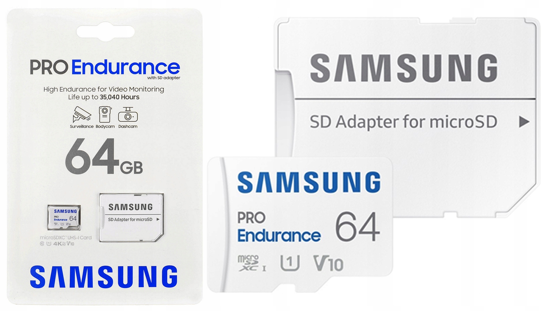- SAMSUNG Pro Endurance КАРТА ПАМЯТИ microSD Высококачественная выделенная карта объемом 64 ГБ для непрерывной записи на видеорегистраторах