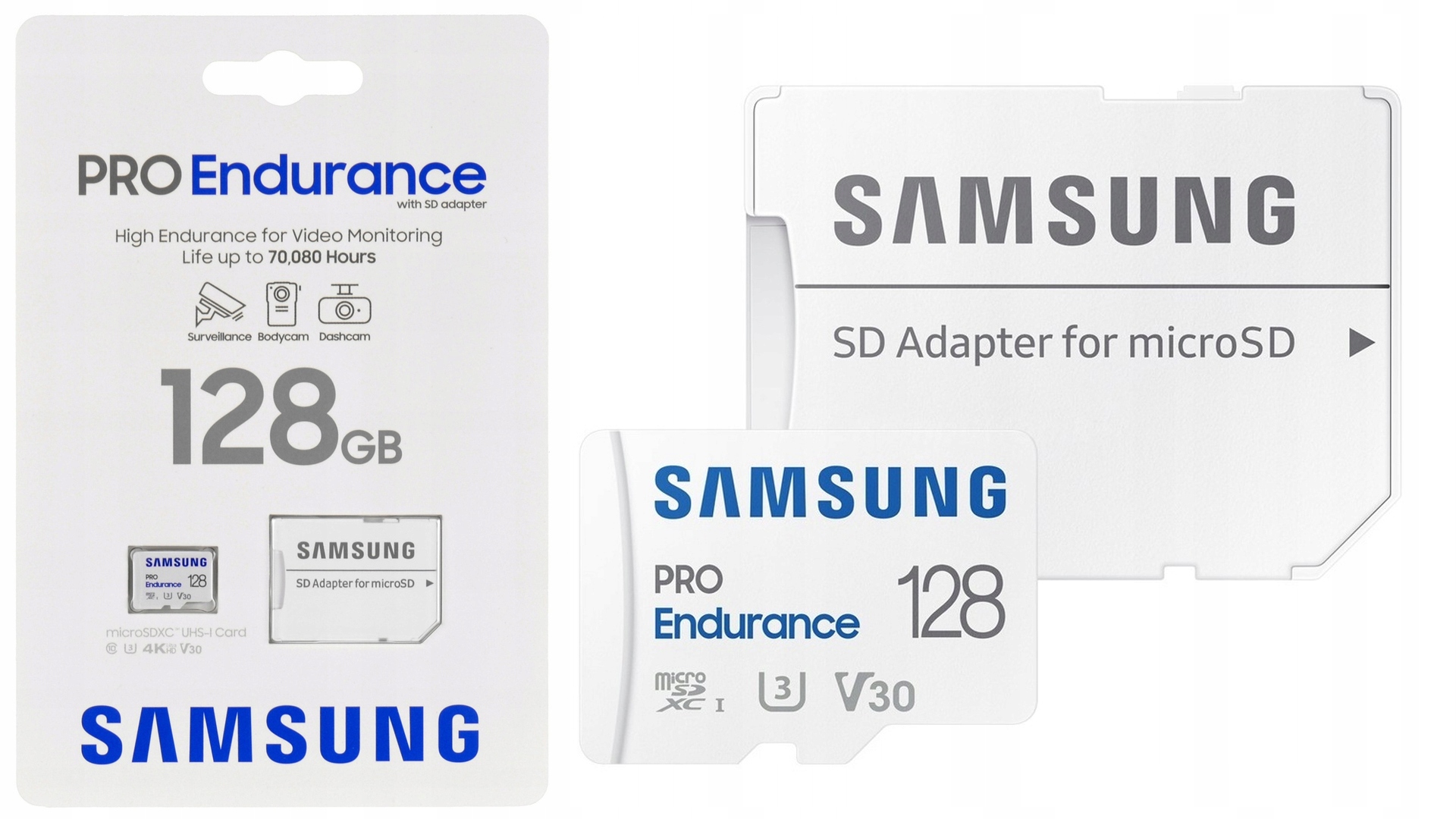 - SAMSUNG MEMORY CARD Высококачественная выделенная карта Pro Endurance microSD емкостью 128 ГБ для непрерывной записи в видеорегистраторах.