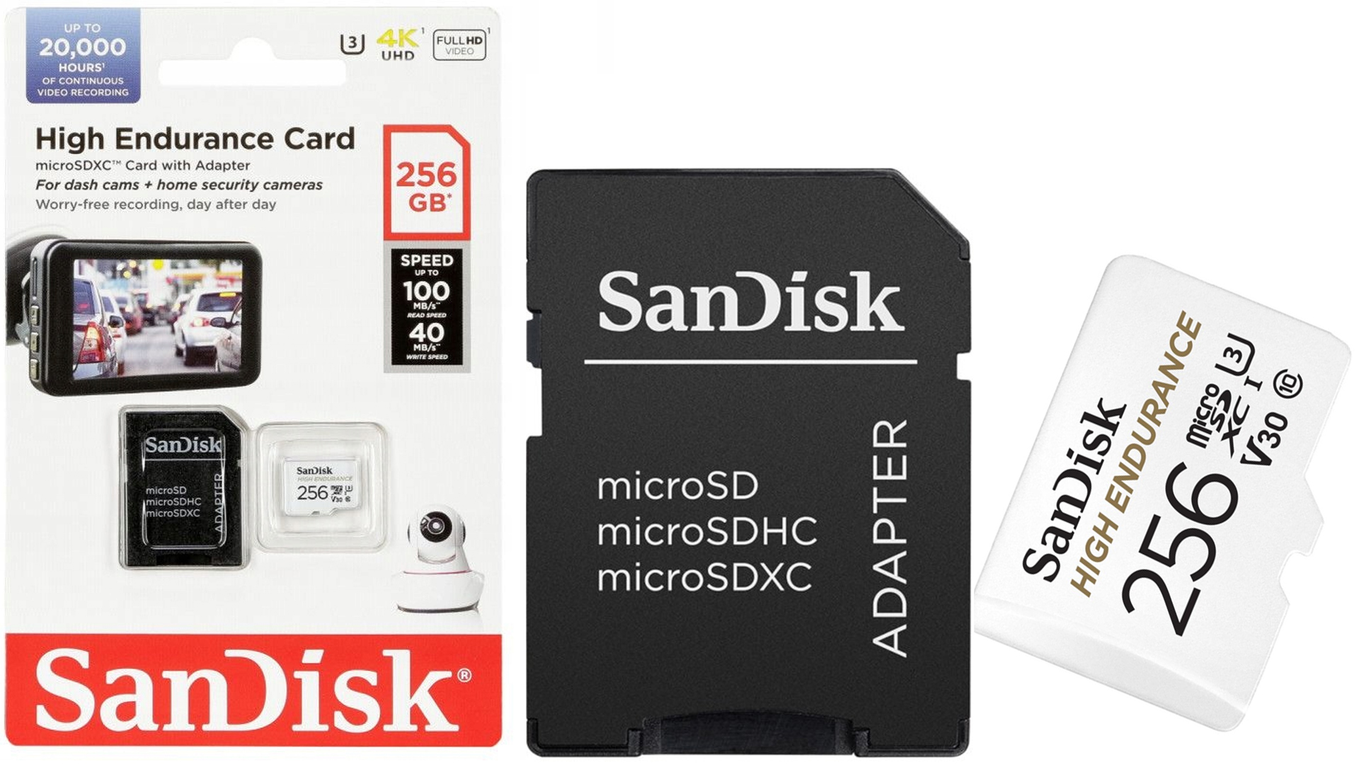 - КАРТА ПАМЯТИ Sandisk micro High Endurance SDXC 256 ГБ V30 – качественная выделенная карта для непрерывной записи в видеорегистраторах.