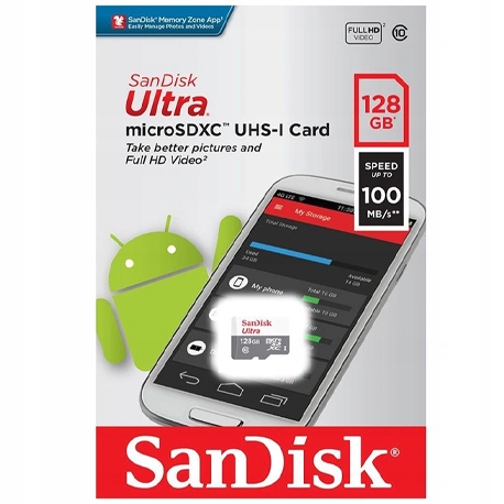 Карта SanDisk ULTRA microSD 128 ГБ, 100 МБ/с Android