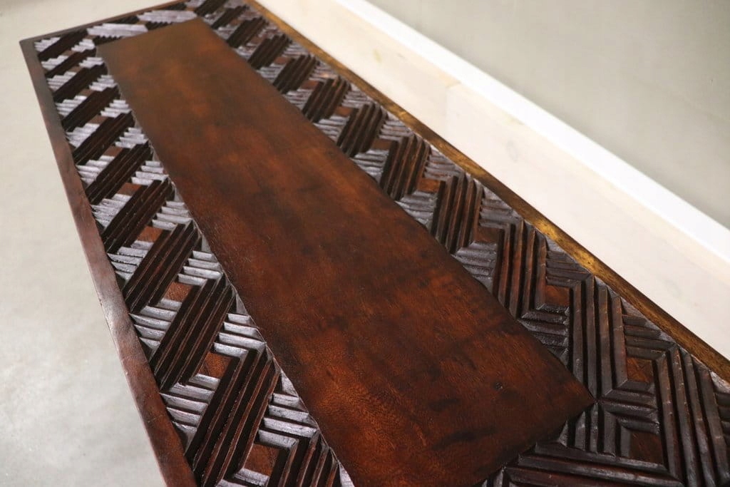 Комплект из экзотического дерева – массивный резной стол + 4 стула.