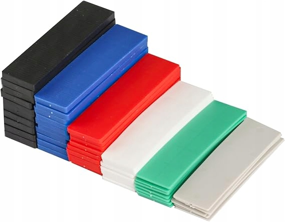 Проставочные блоки из прочного пластика из ПП, набор из 72 штук 6 размеров. В наборе по 12 штук каждого цвета и толщины: красный 100х28х6 мм, синий 100х28х5 мм, красный 100х28х4 мм, белый 100х28х3 мм, черный 100х28х2 мм, зеленый 100х28х2 мм. Совет: размер может иметь небольшую погрешность до 0,3 мм.