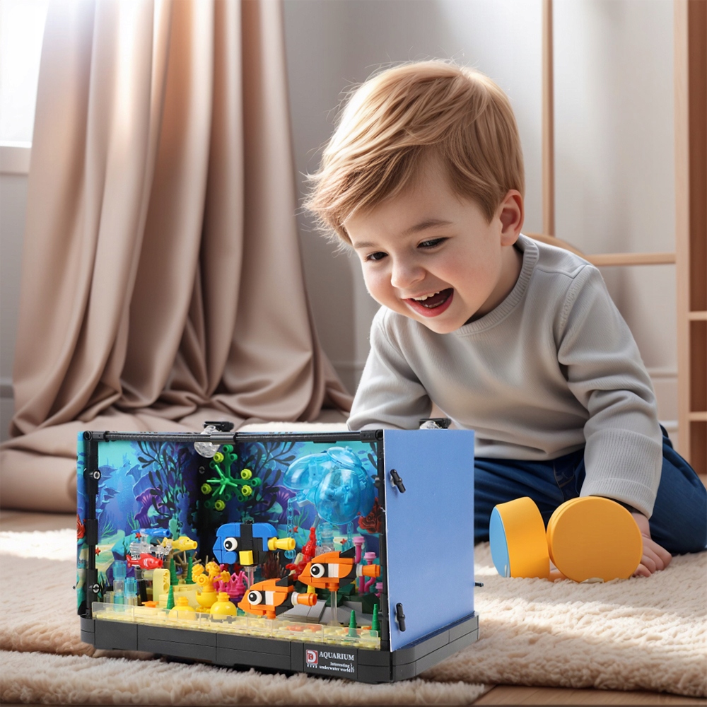 🐠🐠🐠Набор кубиков для строительства аквариума:22 х 13 см. Содержит 725 предметов. Точно отлитый из высококачественного АБС-пластика, он имеет гладкие края, не имеет заусенцев и запаха, что обеспечивает безопасную установку и совместимость. Он не слишком тесный и не слишком свободный.