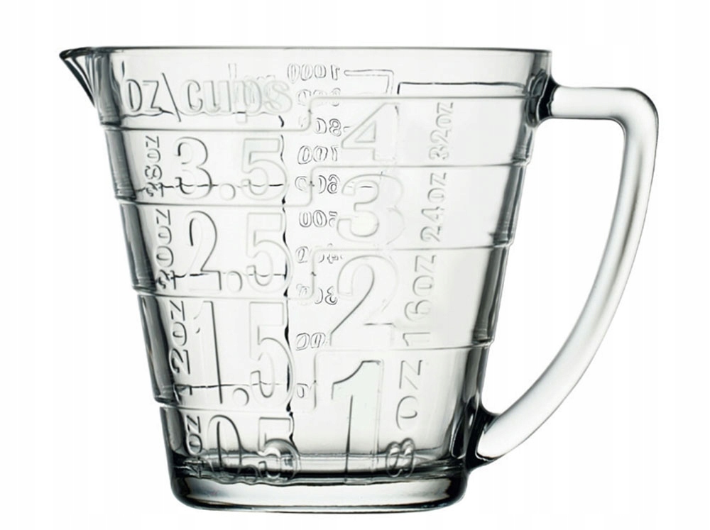 Мерный кувшин идеально подходит для повседневных дел на кухне. На сосуде имеется очень четкая печать со шкалой, что облегчает отмеривание жидких и сыпучих продуктов. Кувшин изготовлен из стекла, которое в 2-3 раза более устойчиво к повреждениям, чем фарфор или фарфоровые изделия аналогичной толщины. Его поверхность идеально гладкая.