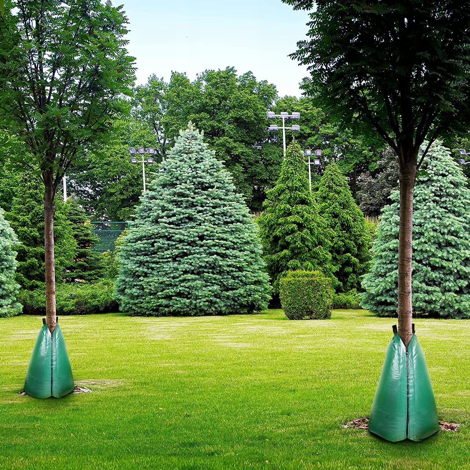 🌴Идеально подходит для недавно посаженного/укоренившегося дерева. Этот мешок для орошения деревьев представляет собой мешок для орошения с медленным выпуском, который идеально подходит для недавно посаженных или укоренившихся деревьев с диаметром ствола и ветвями, начинающимися на высоте не менее 63 см от земли или выше. Для более крупных деревьев можно объединить несколько мешков вместе. 2 мешка для полива деревьев на молнии, подходят для ствола диаметром 15–40 см. Обратите внимание, что очень молодое дерево (диаметром менее 5 см) может оказаться слишком маленьким для использования этого мешка для полива деревьев.