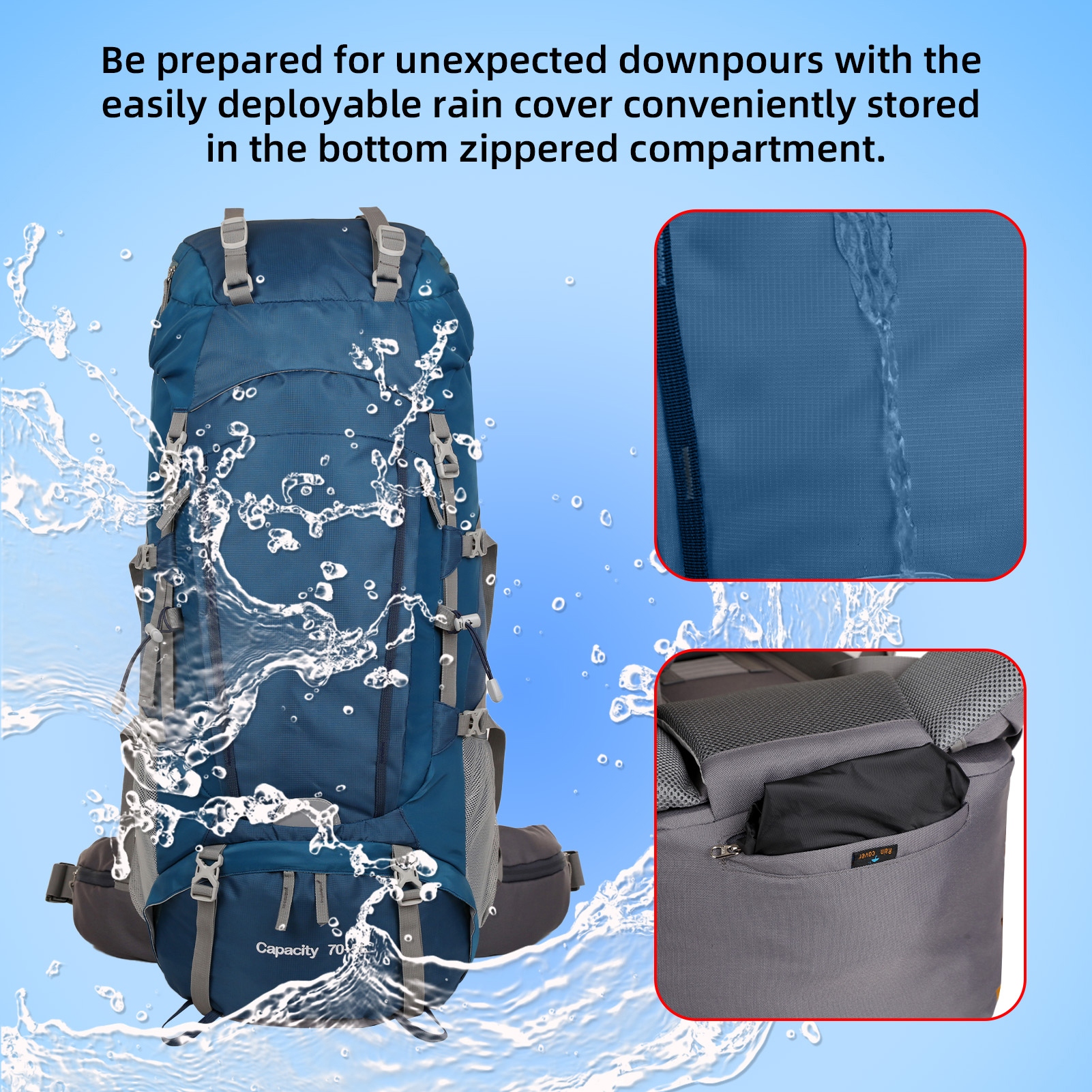 1. Подготовьтесь к неожиданным ливням благодаря легко снимаемому дождевику, который удобно хранится в нижнем отделении на молнии.