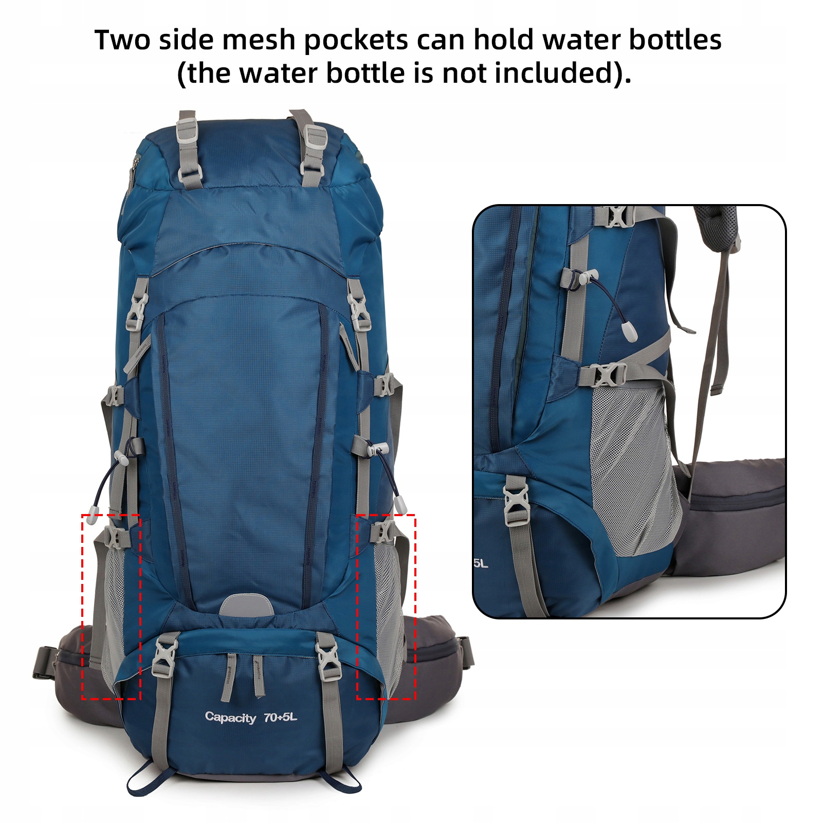 3. В два боковых сетчатых кармана можно положить бутылки с водой.