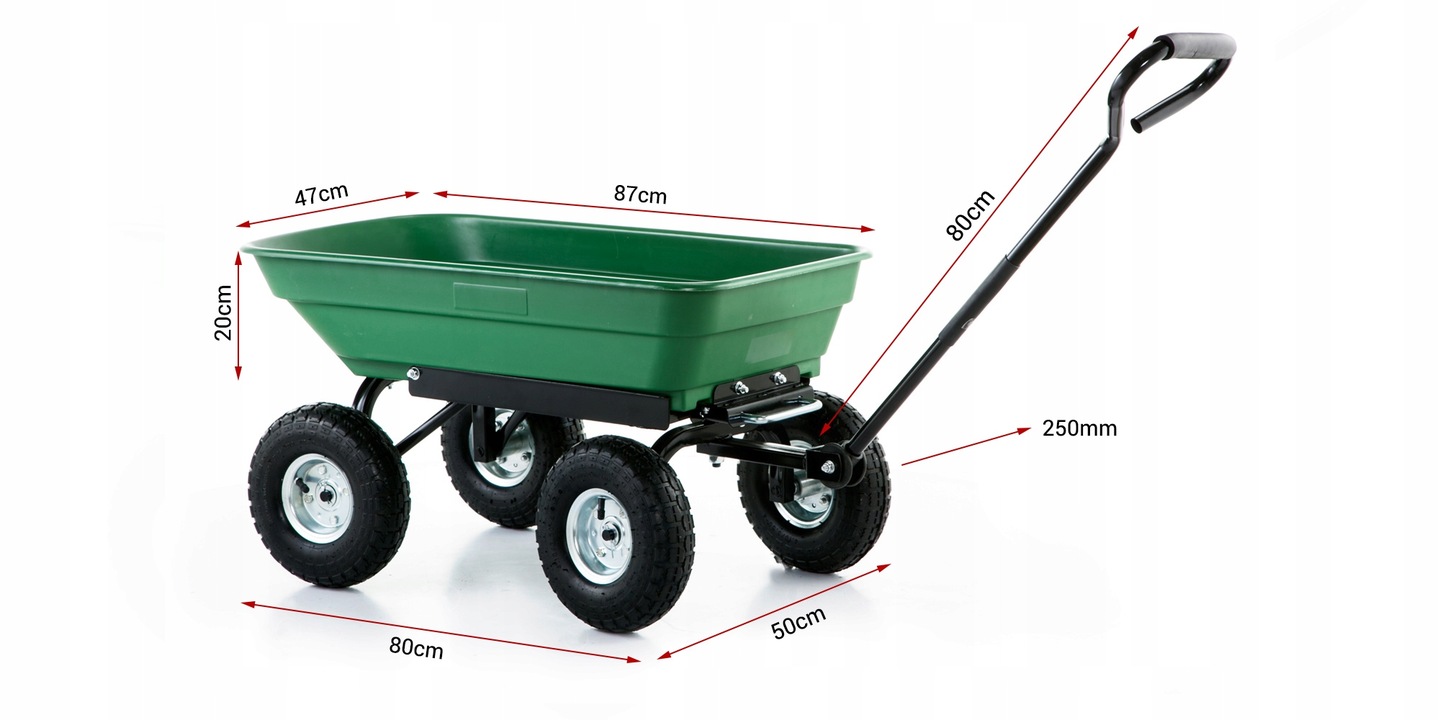 Садовые грузовики оснащены крутой осью, которая обеспечивает легкое маневрирование даже при очень высокой нагрузке. Благодаря использованию стальных строительных материалов, мы можем быть уверены, что ось и вся конструкция тележки выдержит тяжелые нагрузки.