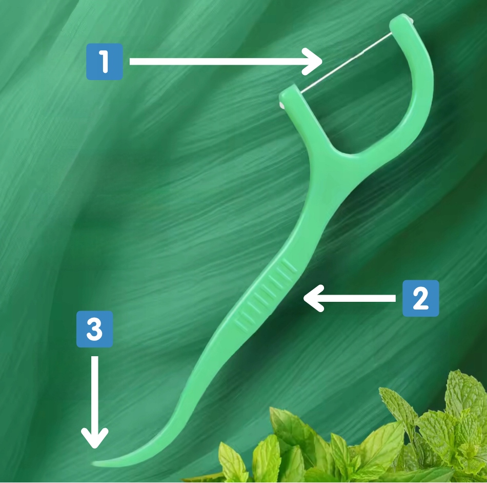 ✔ сопровождаемый и гигиенический - каждая зубочистка с напряженной зубной нитью обеспечивает быструю и эффективную чистку, не касаясь нити пальцами.