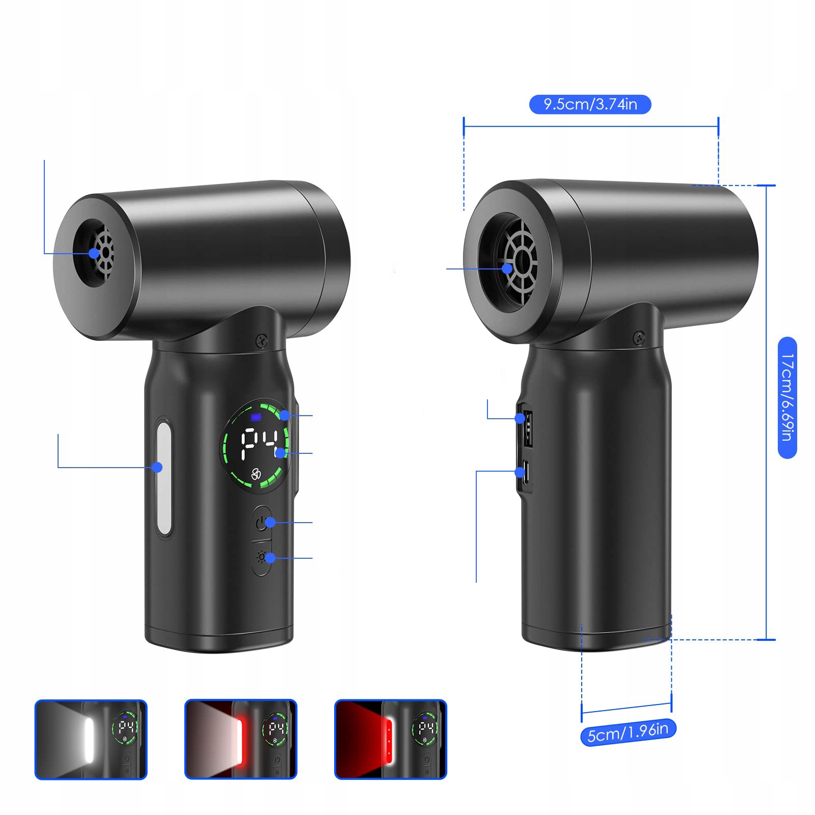 Воздушный пылесборник с новейшим бесщеточным двигателем мощностью 100 Вт и силой обдува 5500Па б>. Электрический вентилятор может очищать различные предметы на 3 скоростях. Устройство можно включить и выключить в течение 3 секунд. Благодаря эффективной технологии двигателя электрический пылесос может развивать максимальную скорость 110 000 оборотов в минуту, чтобы очистить каждый уголок.