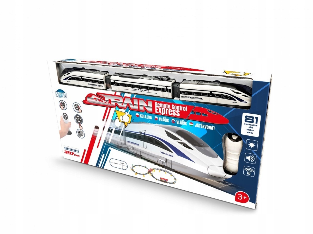 ЭЛЕКТРОПОЕЗД ГУСЕНИЦЫ ПОЕЗД С ДИСТАНЦИОННЫМ УПРАВЛЕНИЕМ 397 СМ В коробке находится реалистичная модель железнодорожного поезда. Длина трассы более 397 см. Дорожки очень легко соединить. Уложенная дорожка образует овал размером 146 х 64 см. Поездом можно управлять с помощью прилагаемого беспроводного пульта дистанционного управления. Очередь имеет звуковые и световые эффекты.