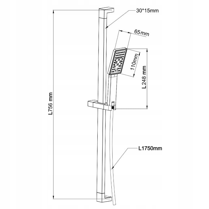 набор душа 77,5 см. Страменовал 3-функциональный черный коврик, Parma jimjim