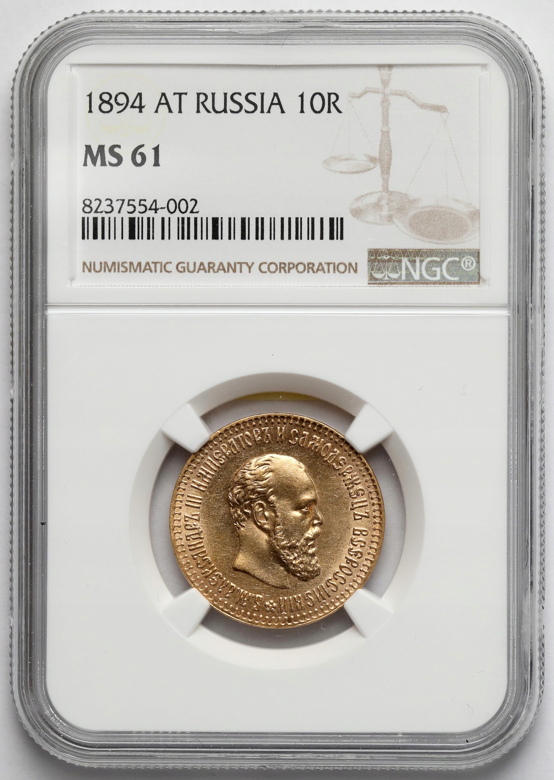 7764. Россия - 10 рублей 1894 - Редкость - Александер III - NGC MS61 - Красиво