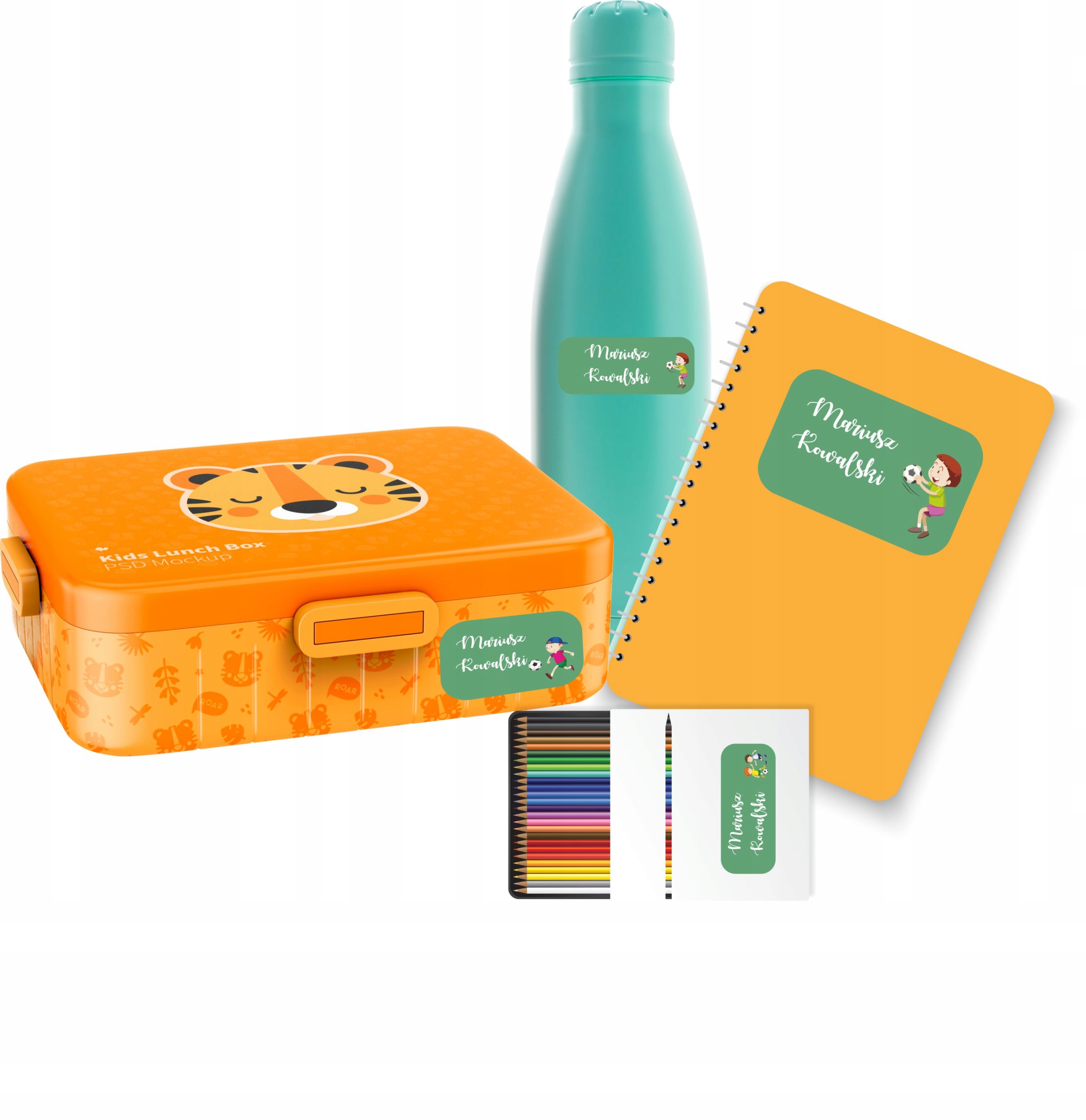 Предмет продажи — большой набор, состоящий из 78 именных наклеек для тетрадей и школьных принадлежностей.