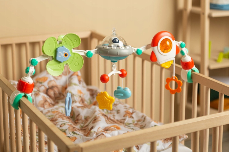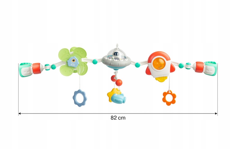 Коляска «Космос» от Toyz подарит вашему малышу массу удовольствия и сенсорное развитие. В нем есть множество игрушек, предназначенных для развития движений и любознательности ребенка. Обращает на себя внимание светящаяся музыкальная панель на батарейках с вращающейся каруселью, которая, проигрывая нежные мелодии, будет помогать малышу. заснуть. Благодаря гибкому и гибкому креплению и защелкам повязку «Космос» можно легко повесить или прикрепить не только к коляске, но и практически к любому месту (автокресло, качалка, шезлонг, стульчик для кормления или кроватка).