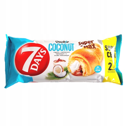 7Days Coconut Double Super-Max – это мягкий, сладкий круассан с кокосовой начинкой. Плотно упакован, поэтому остается совершенно свежим.