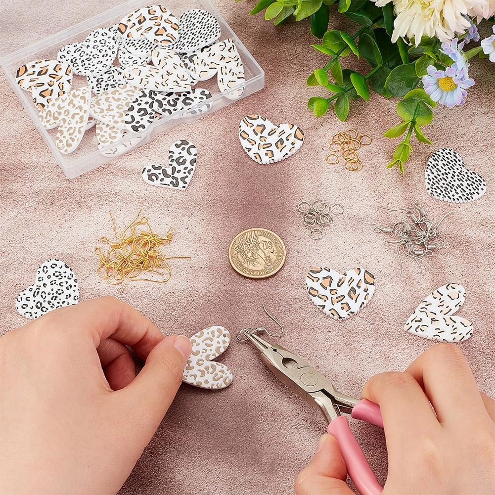 OLYCRAFT 20 шт. Серьги с леопардовым принтом коровы Акриловые серьги Подвеска Серьги-сердечки Набор для изготовления сережек с крючками для сережек