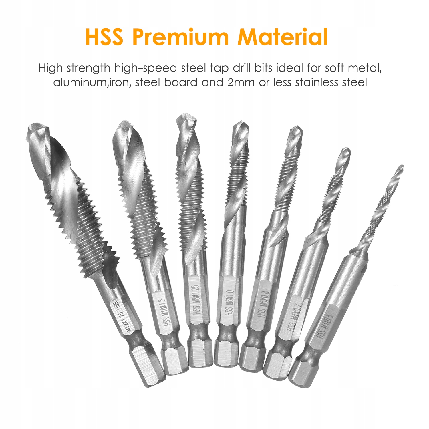 7 шт. комбинированное сверло и нарезание резьбы с метрической резьбой HSS M3-M12, бит 72