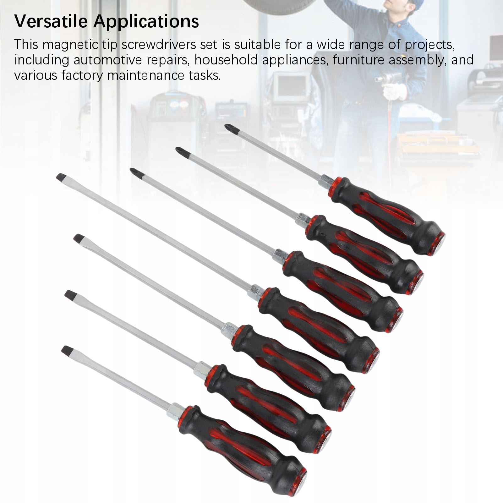 5. Универсальное применение: Этот набор магнитных отверток подходит для широкого спектра проектов, включая ремонт автомобилей, бытовые приборы, сборку мебели и различные заводские задачи по техническому обслуживанию.