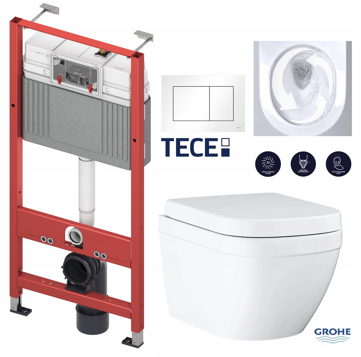 КОМПЛЕКТ ДЛЯ УНИТАЗА 7 в 1, РАМА TECE + Еврокерамический УНИТАЗ GROHE + БЕЛАЯ КНОПКА