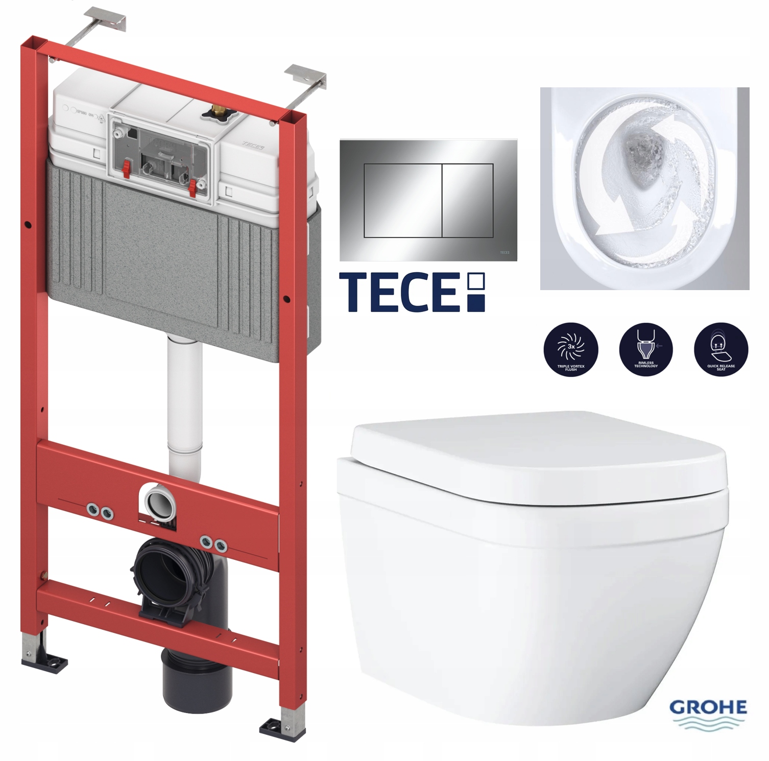 КОМПЛЕКТ ДЛЯ УНИТАЗА 7 в 1, РАМКА TECE + Еврокерамический УНИТАЗ GROHE + ХРОМИРОВАННАЯ КНОПКА