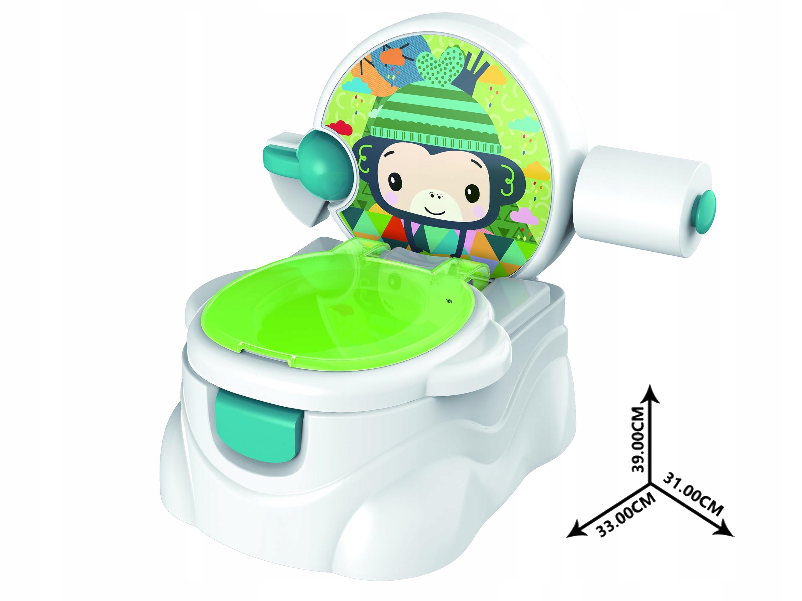 Белый и зеленый цвет / Модель обезьяны / Горшок 7 в 1 — Стул — Подставка для ног — Сиденье — Смыв — Держатель для бумаги — Музыка