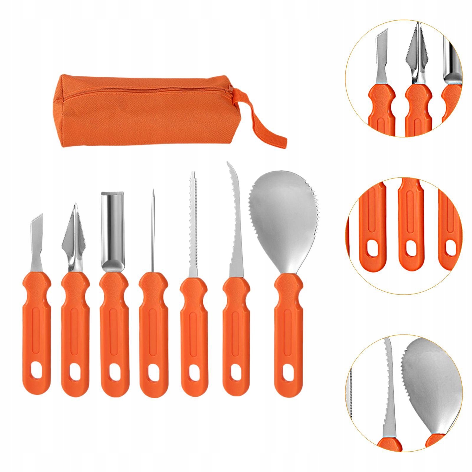 [Группа]: Этот набор инструментов для вырезания тыквы на Хэллоуин предназначен для вырезания тыквы в это время года. В комплект входит сумка для хранения, которую удобно носить с собой.