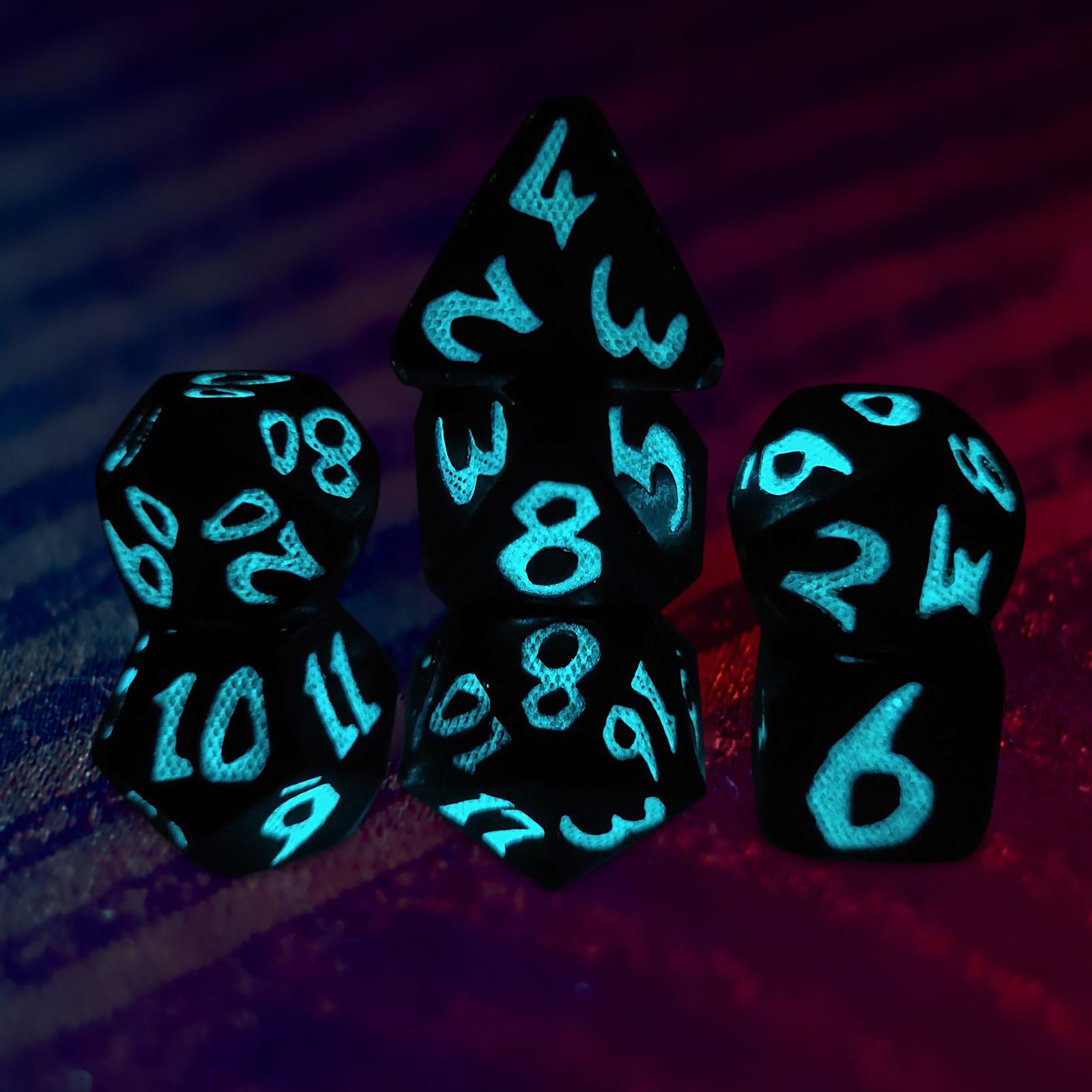 Набор многогранных игральных костей, 7 шт., светящиеся игральные кости, игровые кости для ролевых игр, синие игровые кости