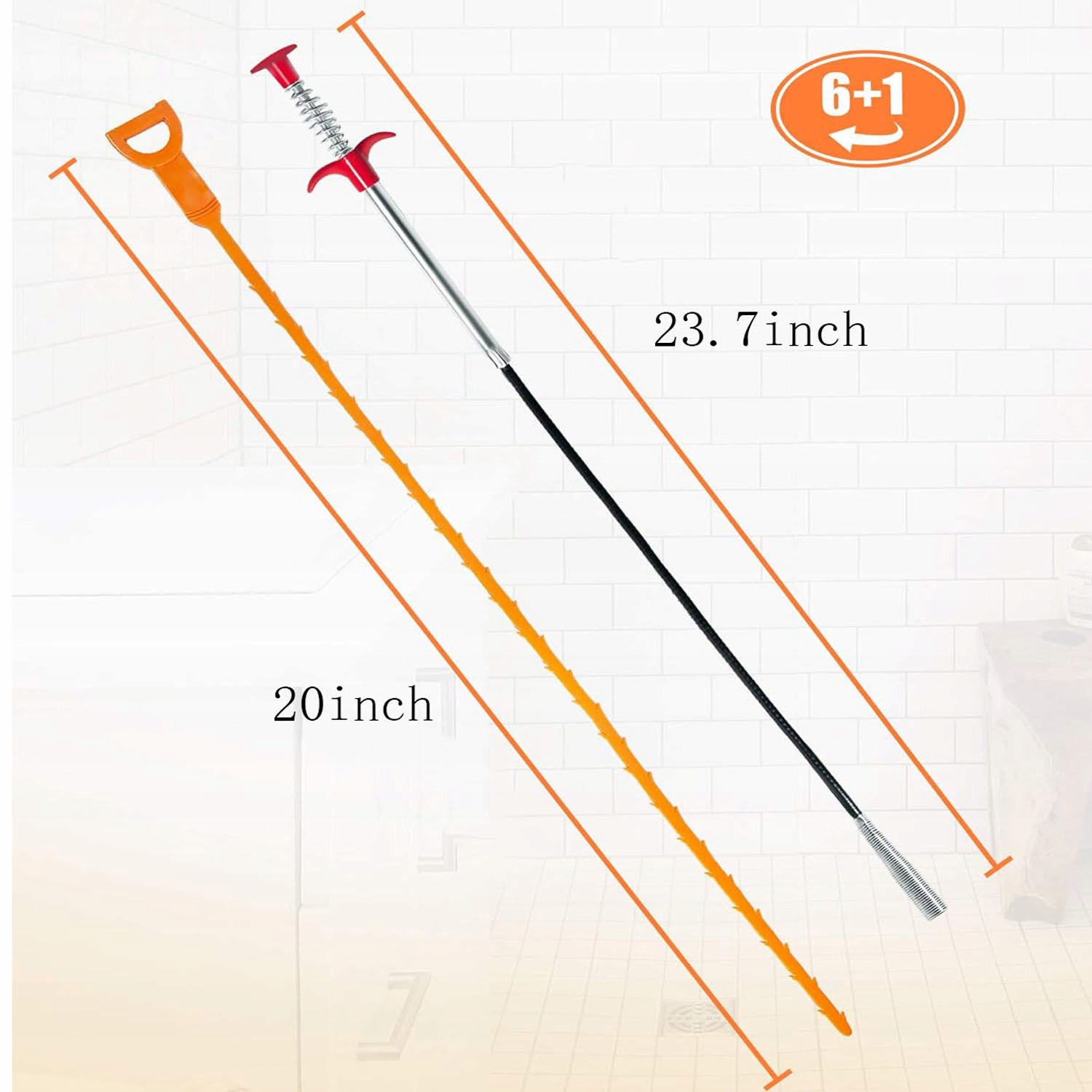 -Насадка для чистки слива имеет длину 20 дюймов, а длина инструмента для чистки раковины достаточна, чтобы дотянуться до сливных труб.