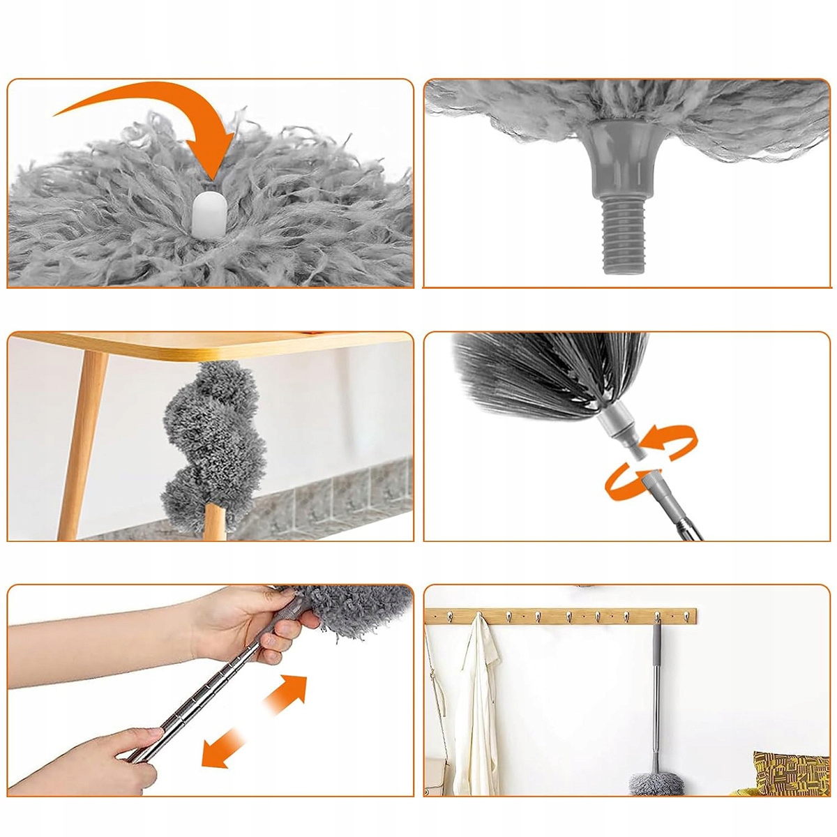 ⛅【 Съемная конструкция, простая в стирке и сухой, эффективная очистка】 Выдвижной метла с перьями содержит в общей сложности 7 инструментов, все из которых можно разобрать и заменять. Его можно заменить на подходящую метлу от перьев, в зависимости от потребностей чистки мебели. После очистки просто разобрать метлу от перьев и промыть ее чистой водой. Рекомендуется быстро повернуть метлу в ваших руках, чтобы она была полной и пушистой.