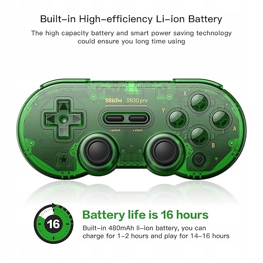 ✅ 8btdo SN30 Pro Wireless Bluetooth Controller - Crystal Green Edition с эффектом зала джойстики h2>