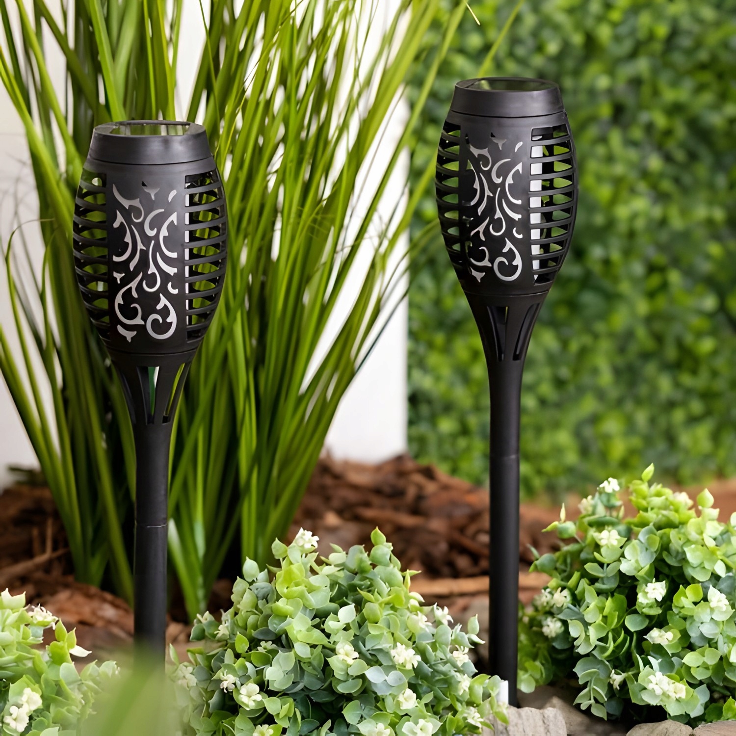 ✔ Лампа отличается элегантным, открытым узором, который после темноты создает эффект реального пламени. Это отличный способ добавить уникальное, капризное освещение в вашем саду